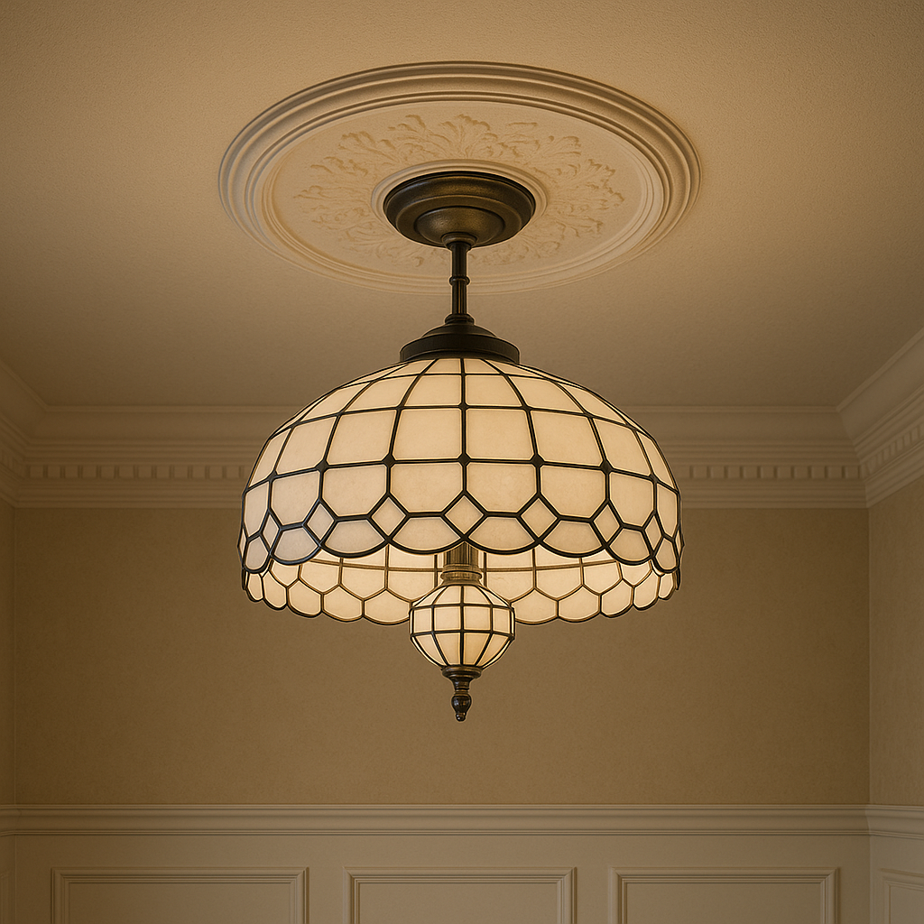 Champagne Carved Wood Entertainment Wall Unit with Lighted Bridge and Mirrored Piers
